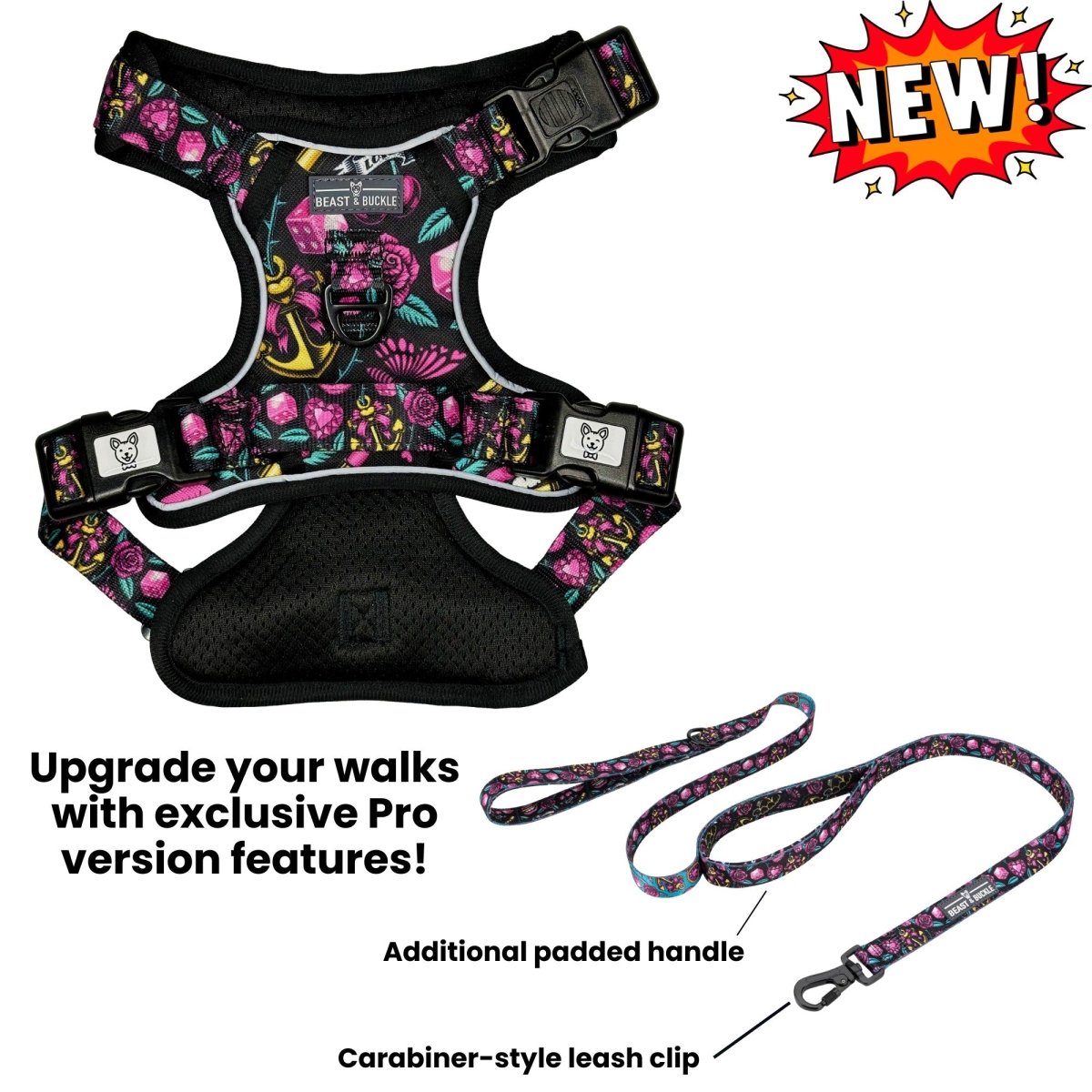 - Cute as a button - it wouldn't be a Beast & Buckle harness if it didn't look like a million bucks...and this one is no exception! No more plain, boring harnesses :)