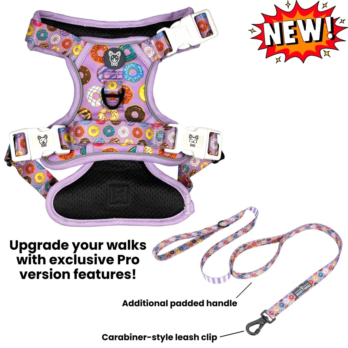 Save money when you grab the Donuts! No-Pull Bundle! Designed to match each other perfectly, this combo will have other dogs doing double-takes when you walk by.