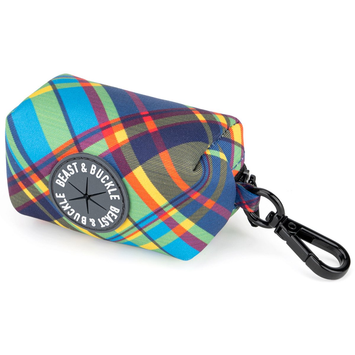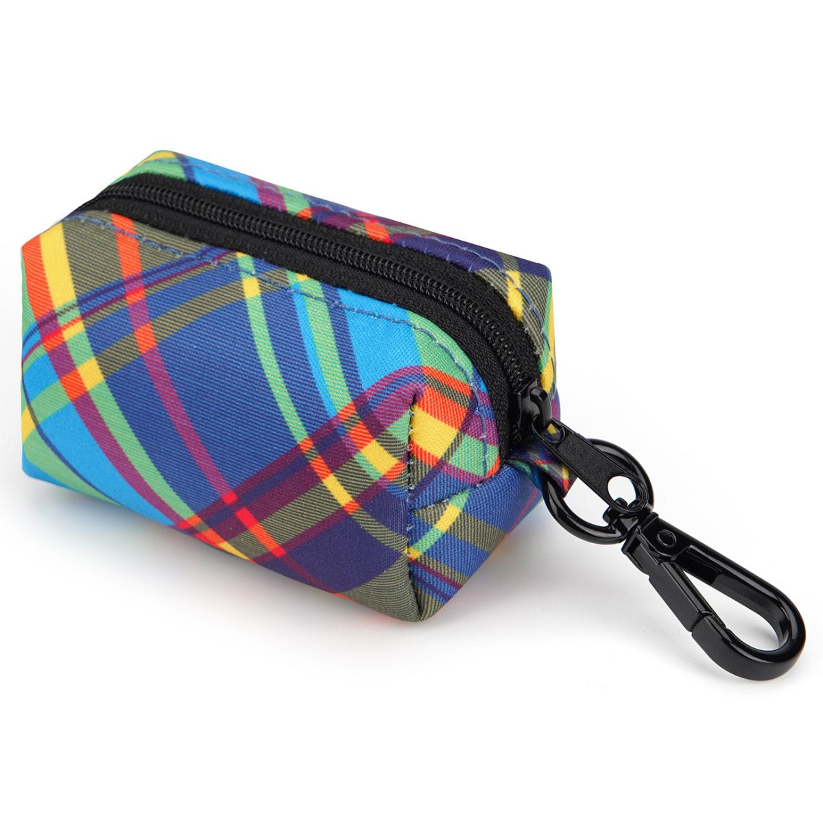 This poop bag holder features our Primary Plaid pattern.