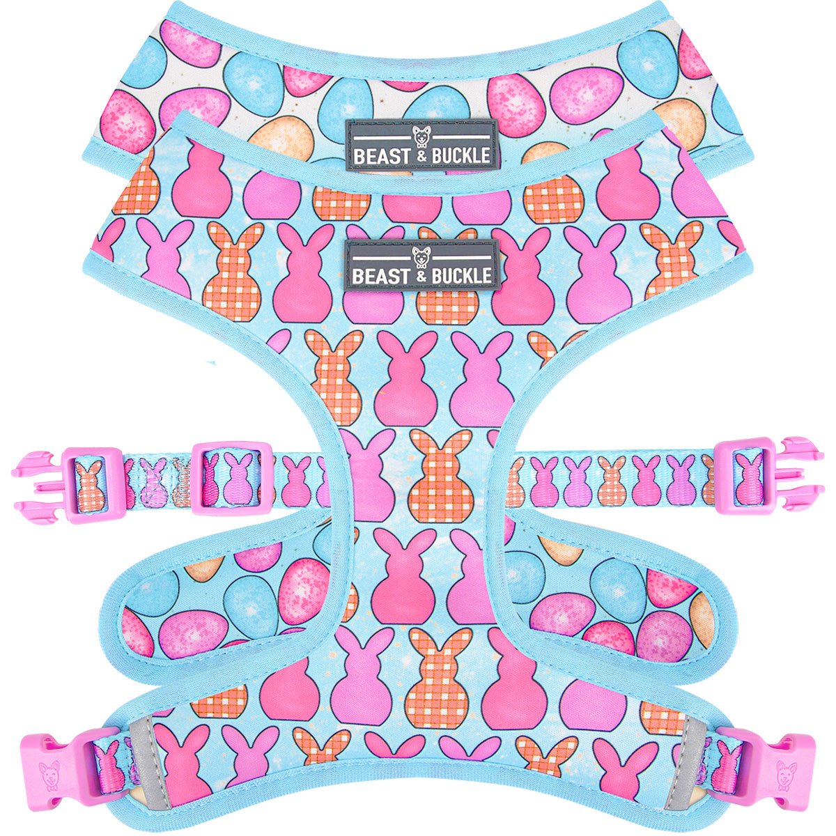 Save money when you grab the Bunny Business harness and leash bundle! Designed to match each other perfectly, this combo will have other dogs doing double-takes when you walk by.