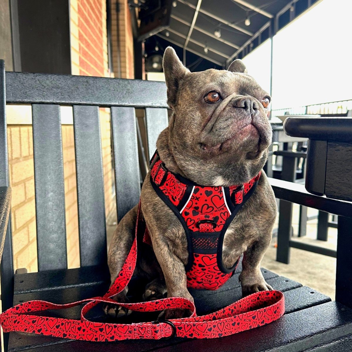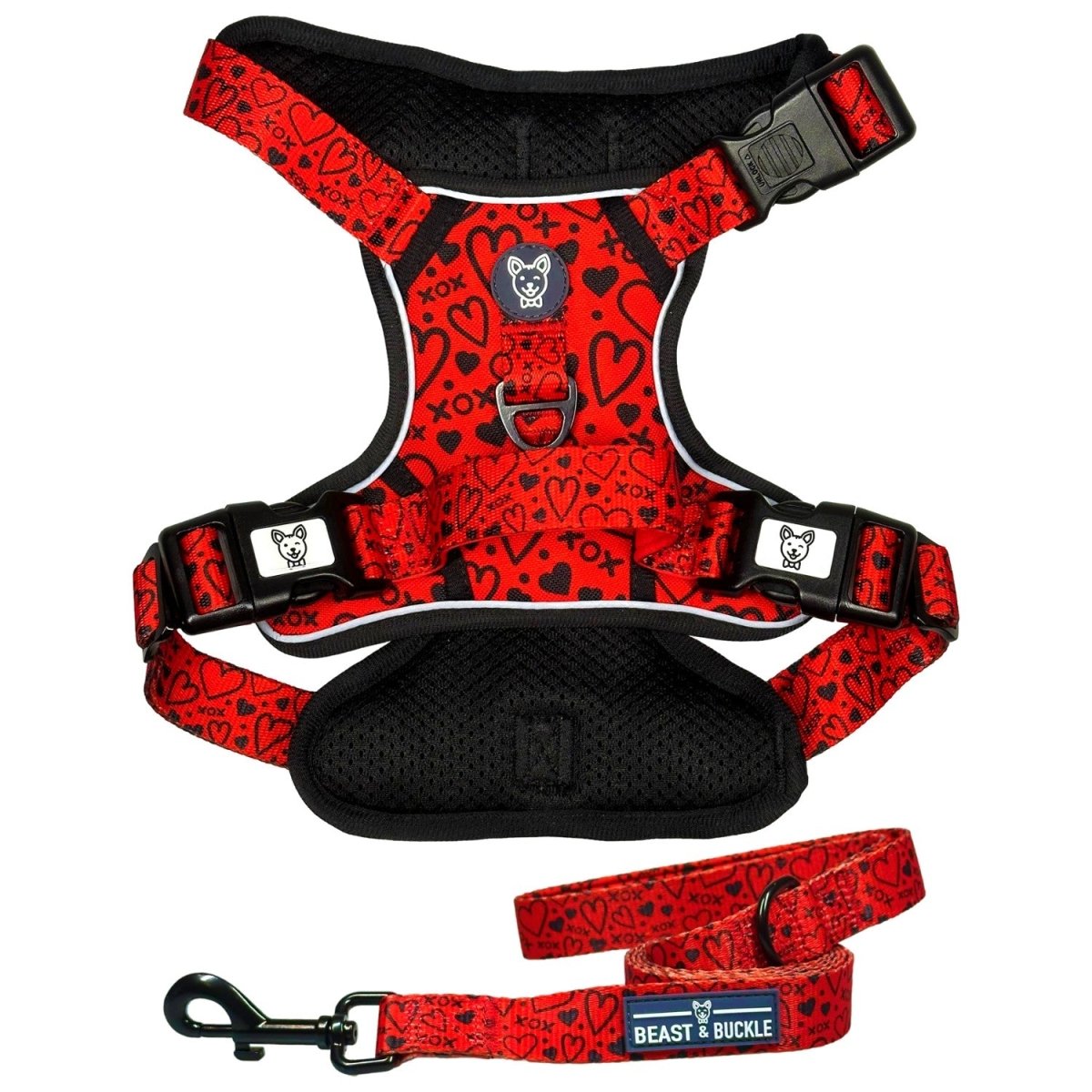 This no-pull dog harness and leash set features a lovey-dovey Xs and Os pattern!