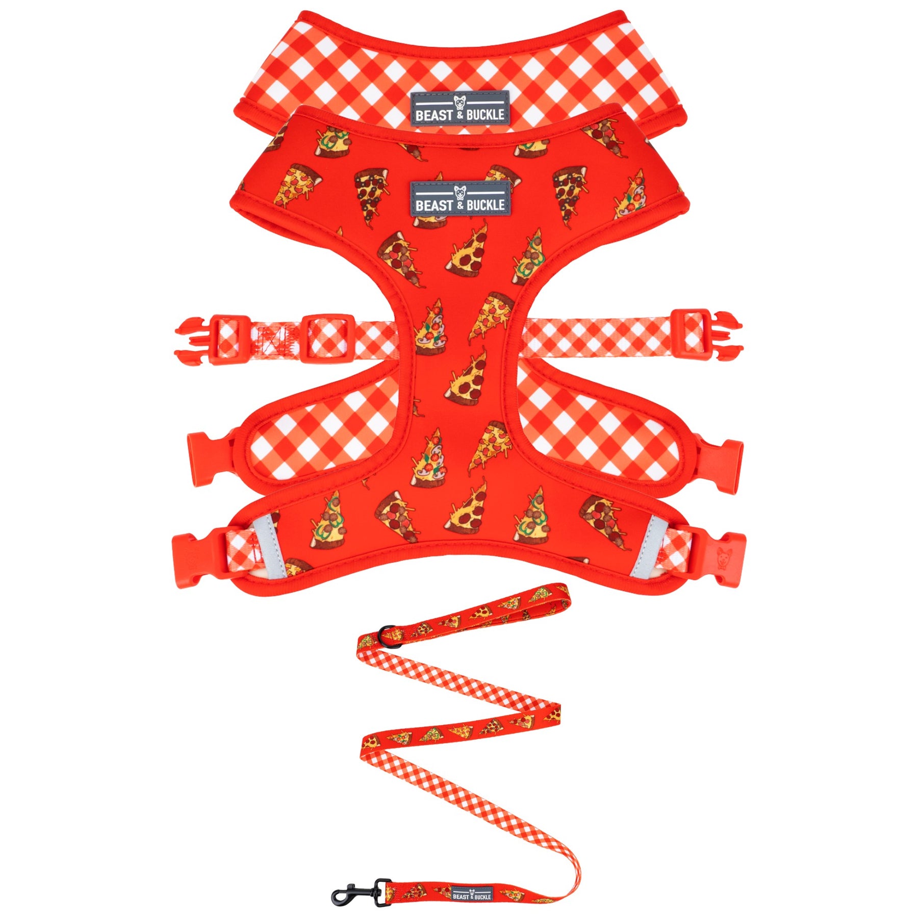 Save money when you grab the Pizza harness and leash bundle! Designed to match each other perfectly, this combo will have other dogs doing double-takes when you walk by.