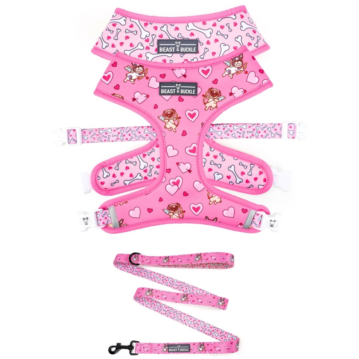 Save money when you grab the Puppy Love harness and leash bundle! Designed to match each other perfectly, this combo will have other dogs doing double-takes when you walk by.