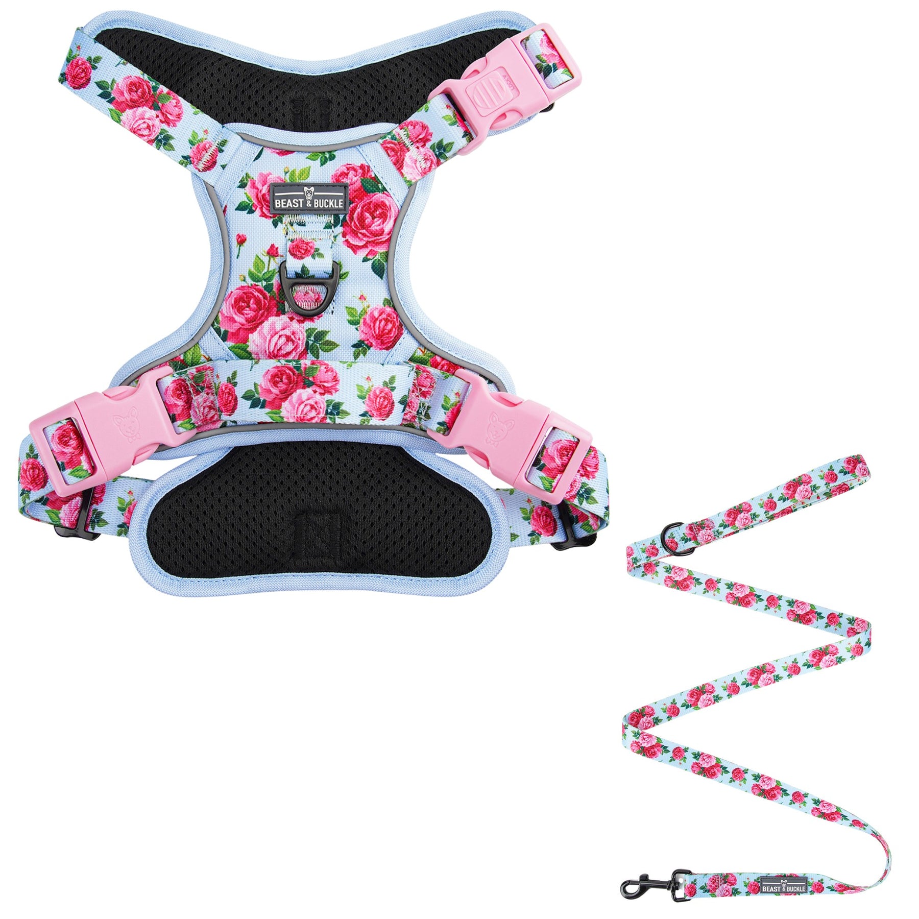 This no-pull dog harness and leash set features an old-fashioned, classic pattern full of roses!