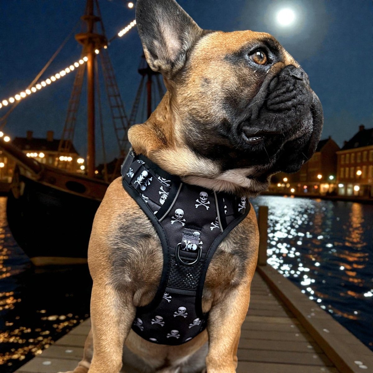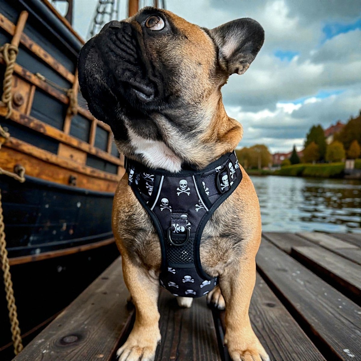 This no-pull dog harness features a classic Jolly Roger pattern!