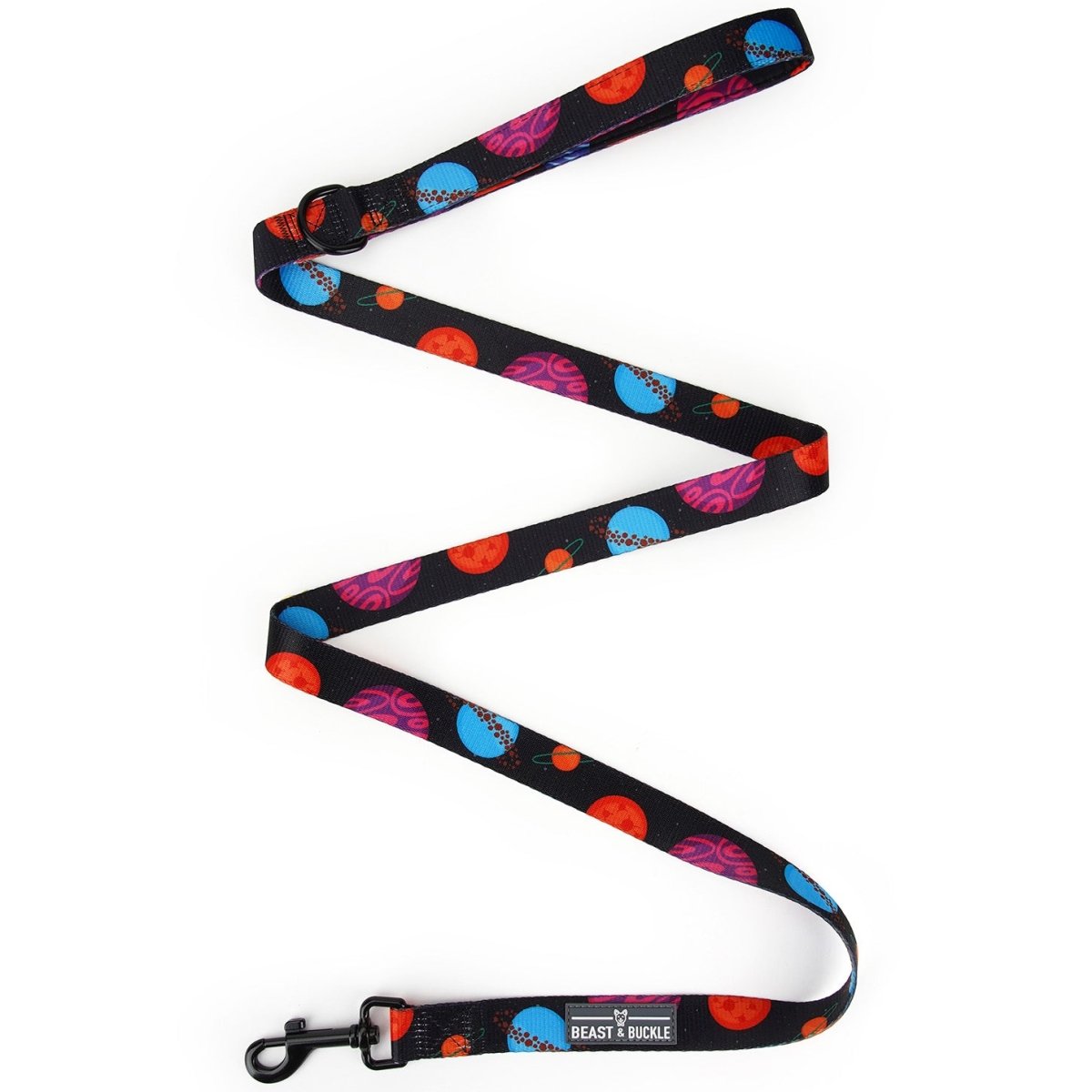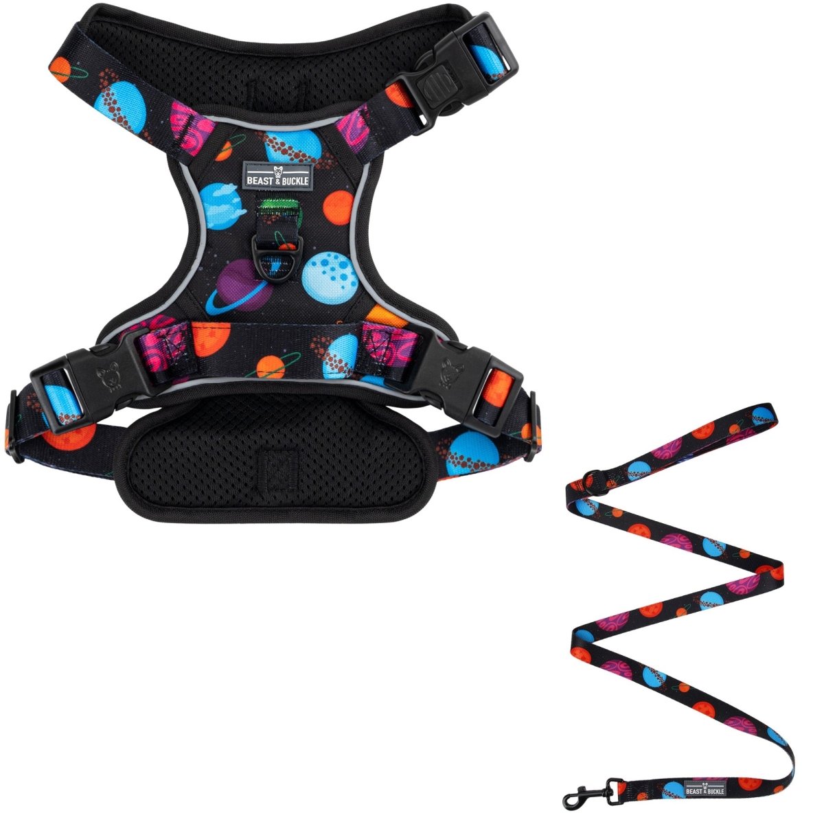 This no-pull dog harness and leash set features a galactically great pattern of various planets!