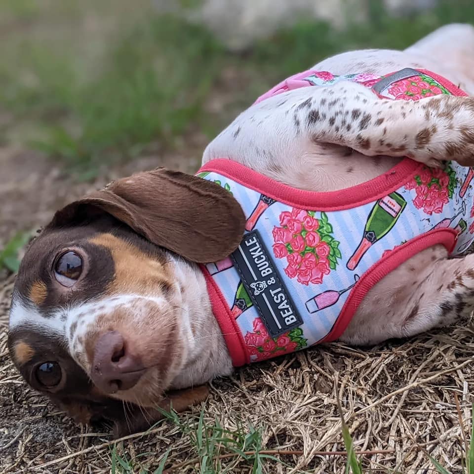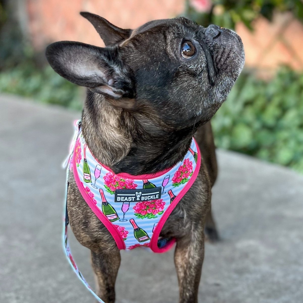 Save money when you grab the Rosé and Roses harness and leash bundle! Designed to match each other perfectly, this combo will have other dogs doing double-takes when you walk by.